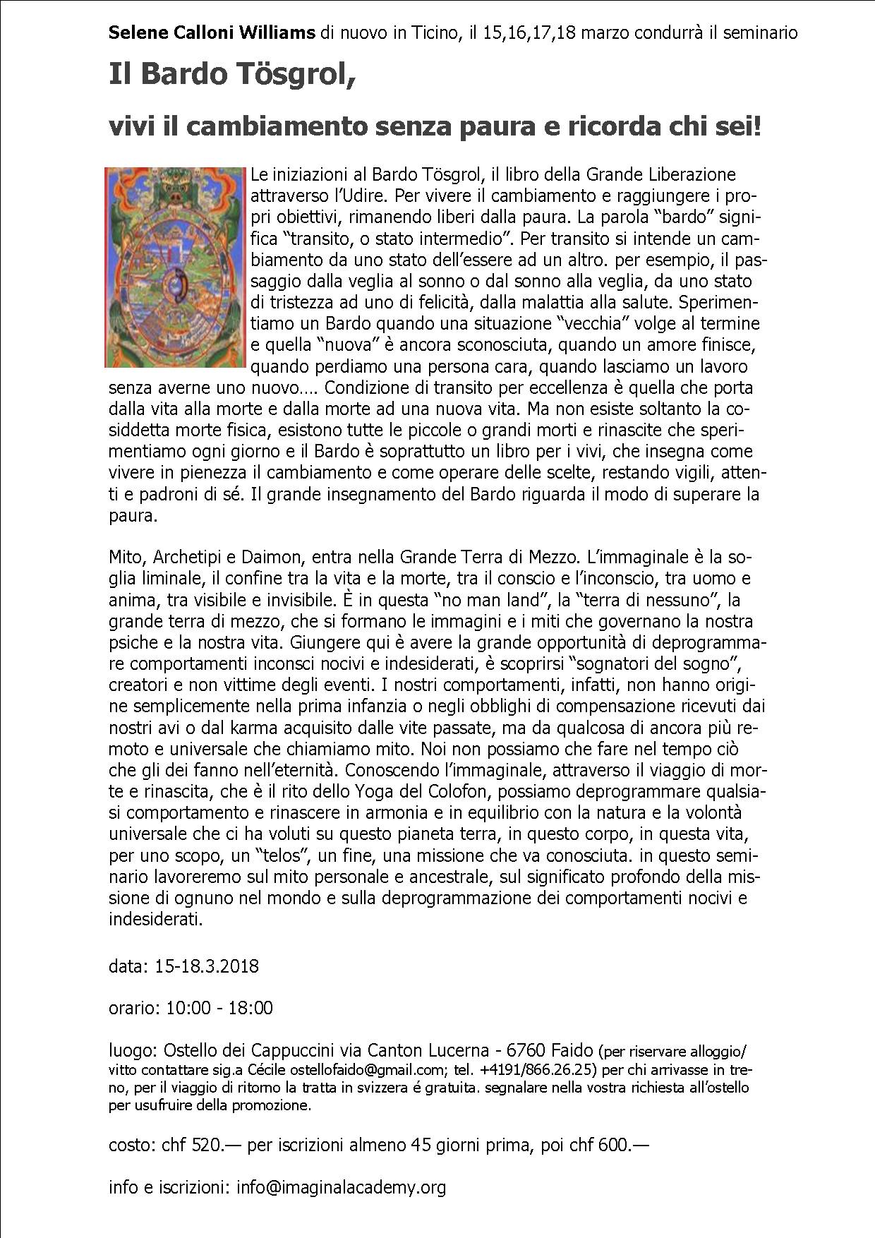15, 16, 17 e 18 marzo a Faido, seminario: Il Bardo Tösgrol
